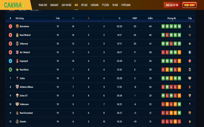 Khám phá chuyên mục BXH tại Cakhia Link